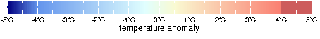 5. colors representing data greater than -4°C and less than -0.5°C blend from CornflowerBlue to LightCyan
